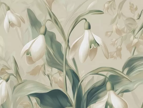 Wall murals blooming snowdrops on a beige background Nr. w05234