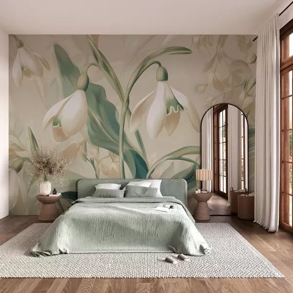 Wall murals blooming snowdrops on a beige background Nr. w05234