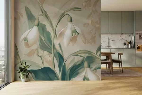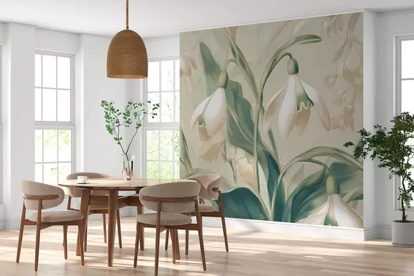 Wall murals blooming snowdrops on a beige background Nr. w05234