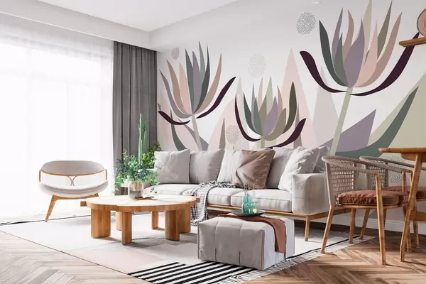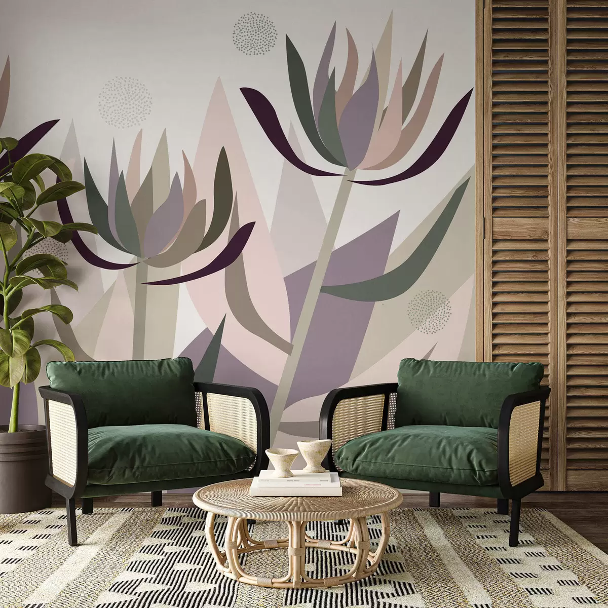 Wall murals stylised protea flowers in a primitive style Nr. w05236