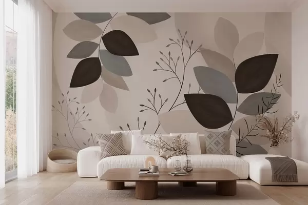 Wall murals leaves and grasses in shades of beige, grey and brown Nr. w05237