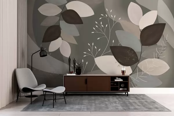 Wall murals leaves and grasses in dark shades Nr. w05237v1