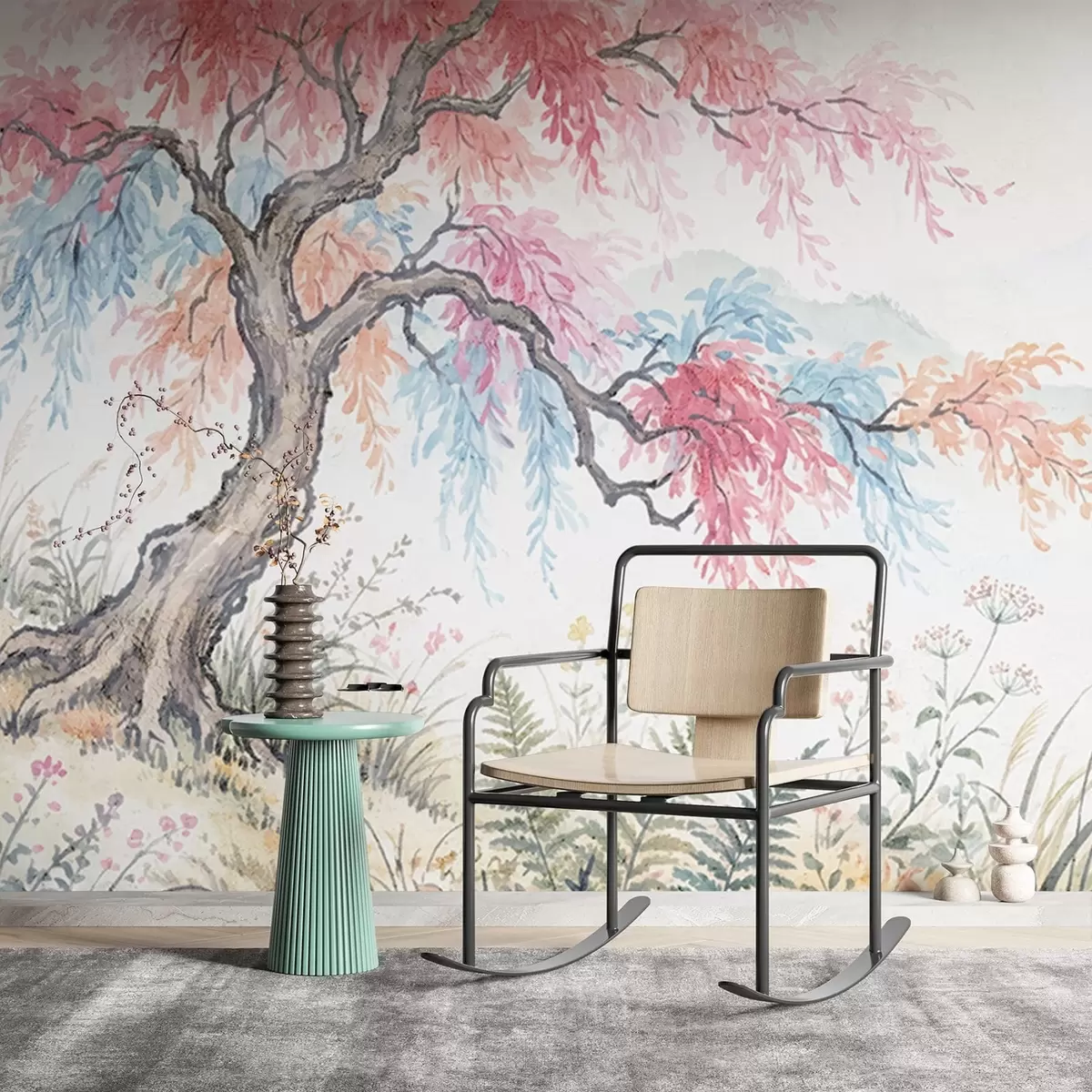 Wall murals Painted colorful garden on concrete wall Nr. w05246