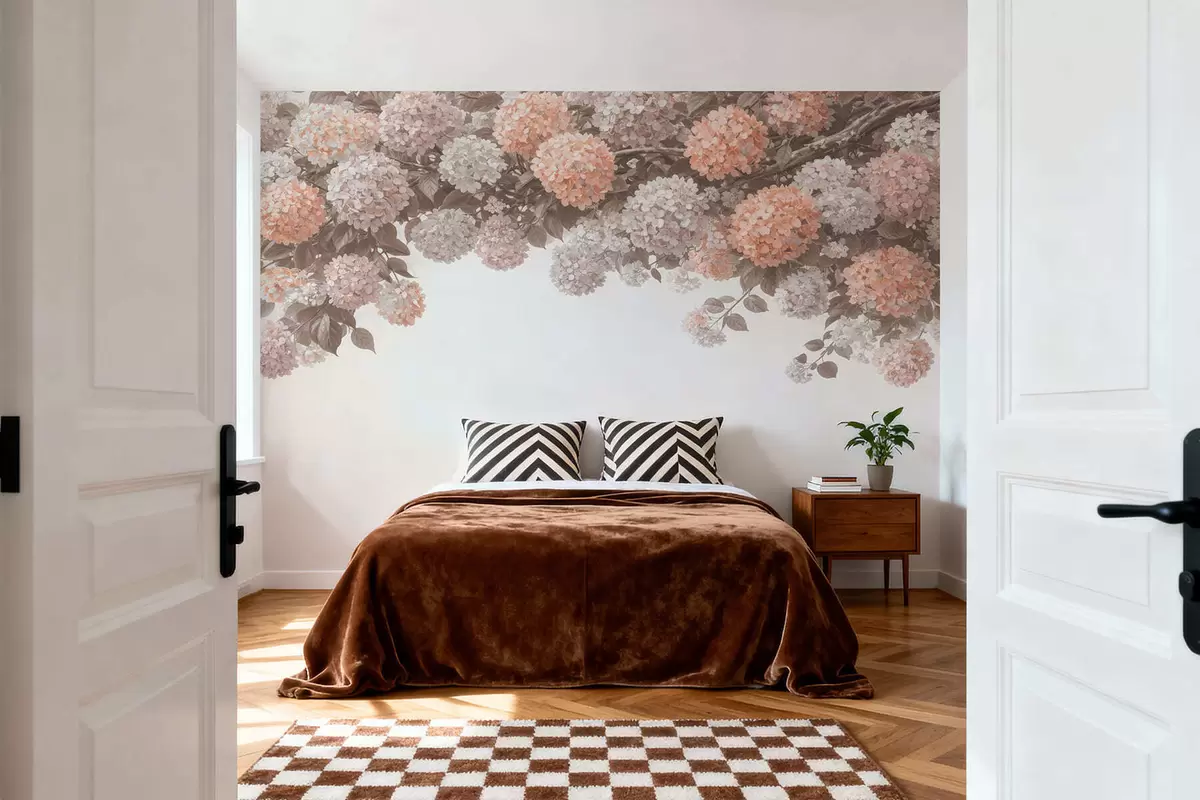 Wall murals Painted hydrangeas hang down Nr. w05250v1