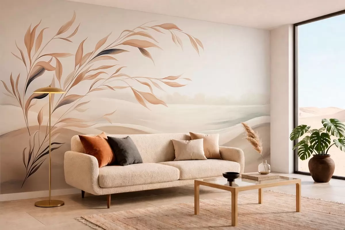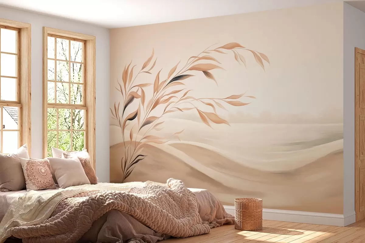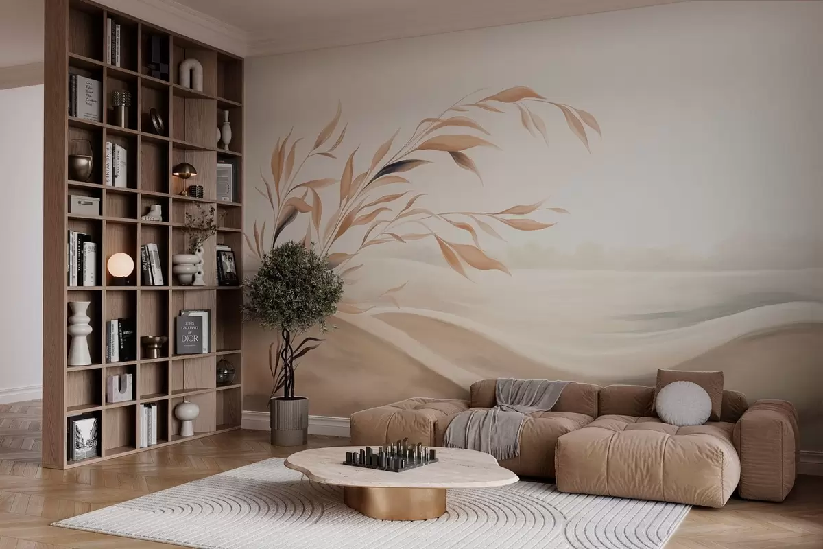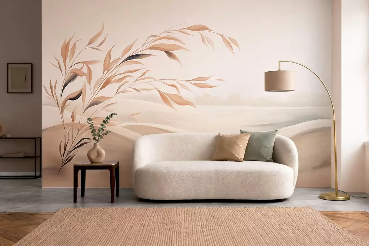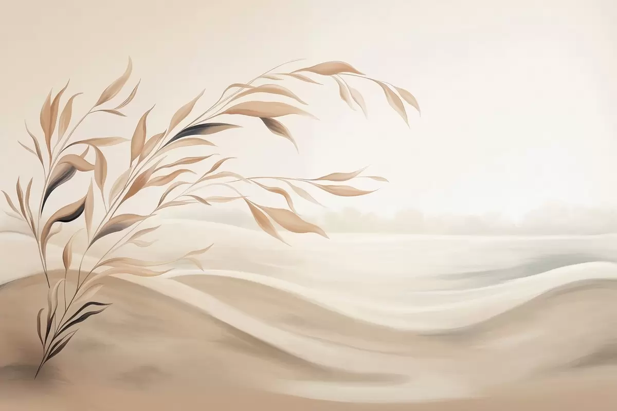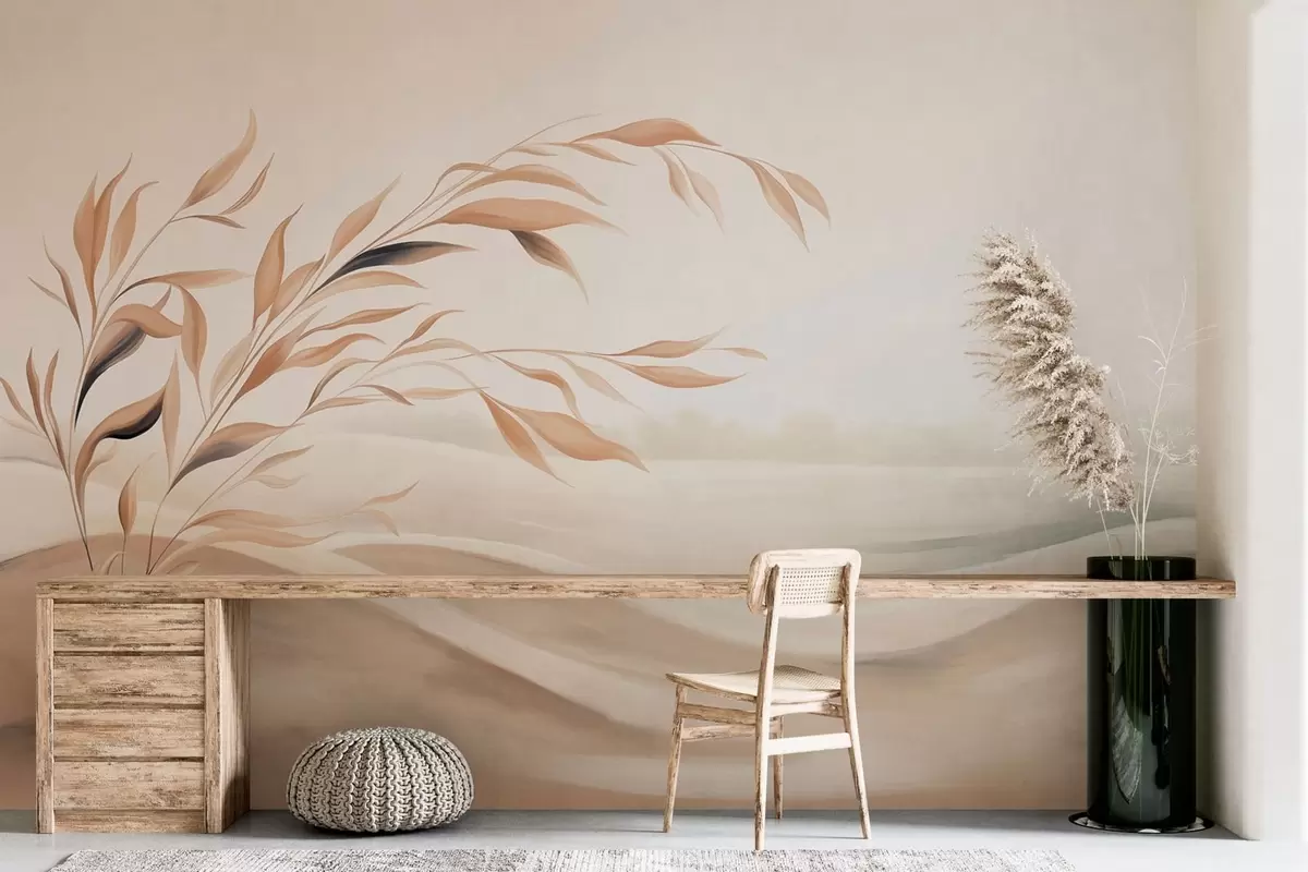 Wall murals A soft landscape with a branch over hills in light beige tones Nr. w05297