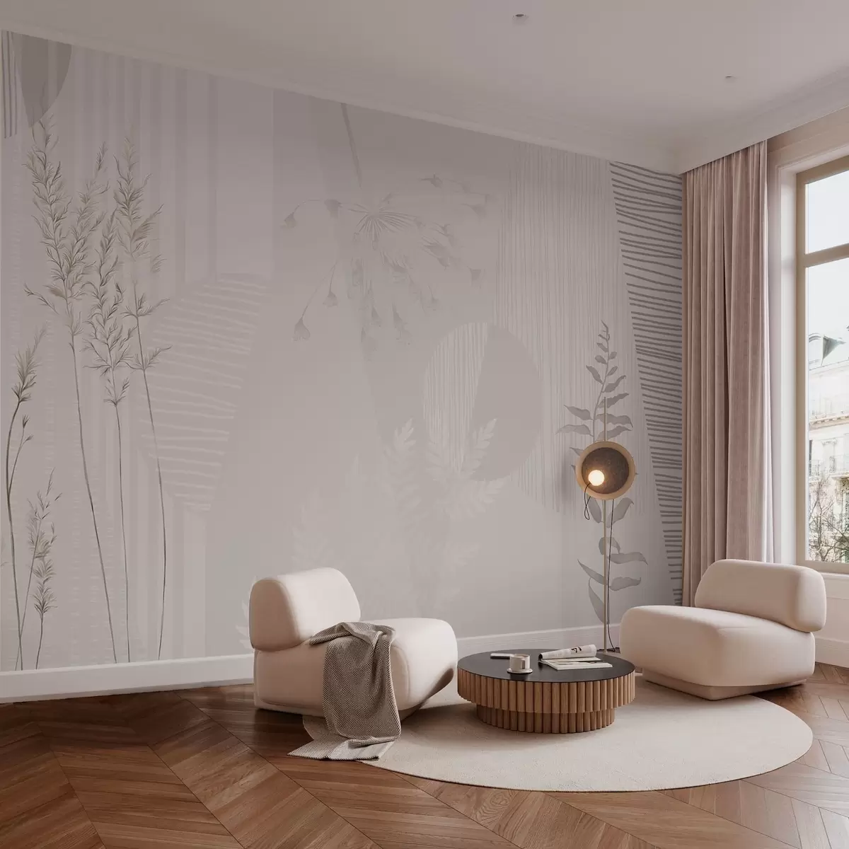 Wall murals Minimalist composition with grasses and shapes Nr. w05318