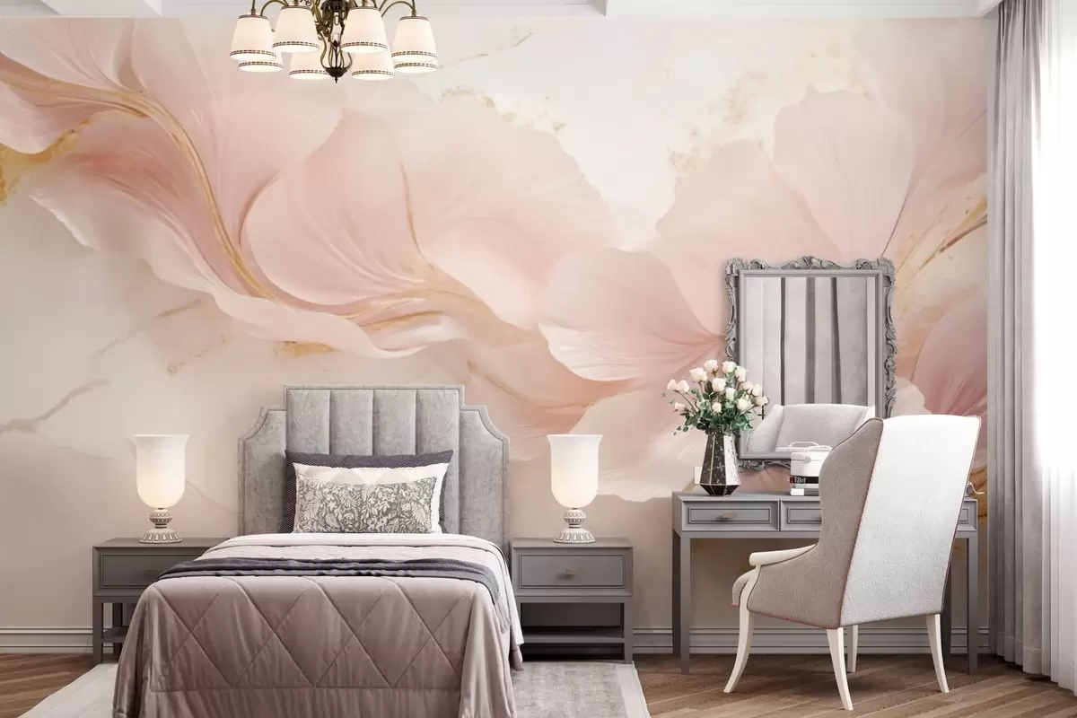 Wall murals Soft pink flowers on a light background Nr. w05357