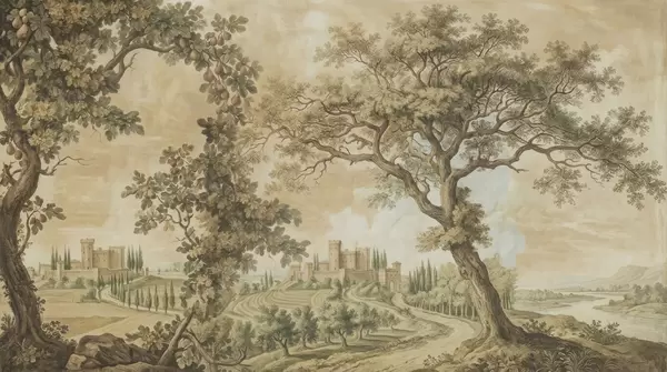 Wall murals Pastoral landscape in embroidered style Nr. w05359