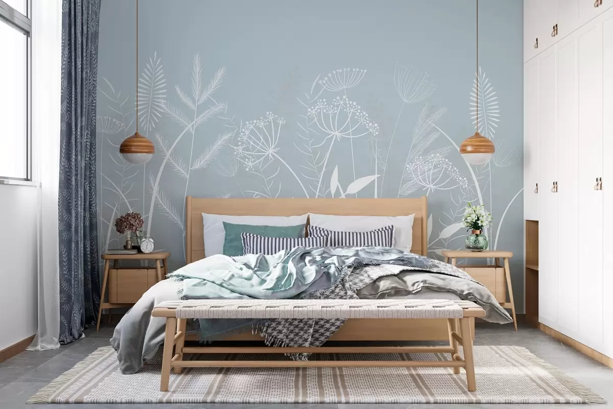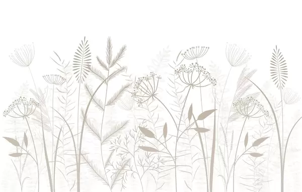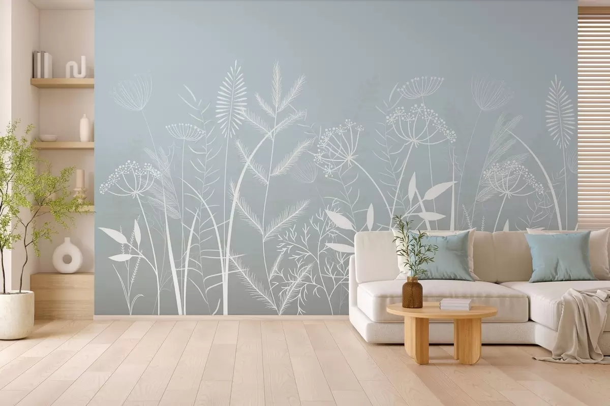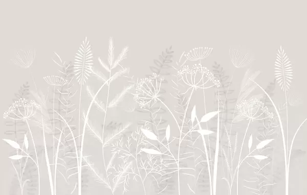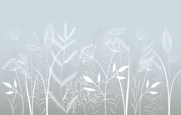 Wall murals delicate hand-painted wild grasses and flowers against a grey-blue background Nr. w05383