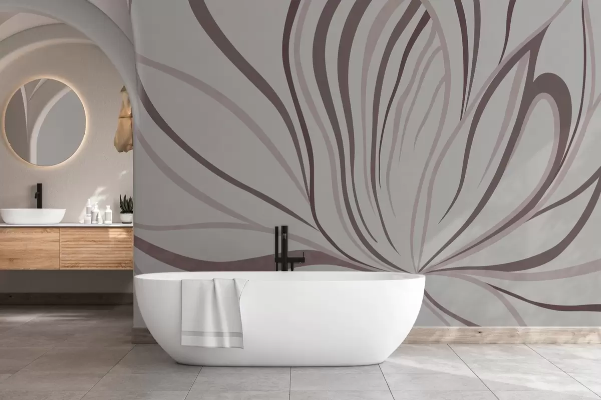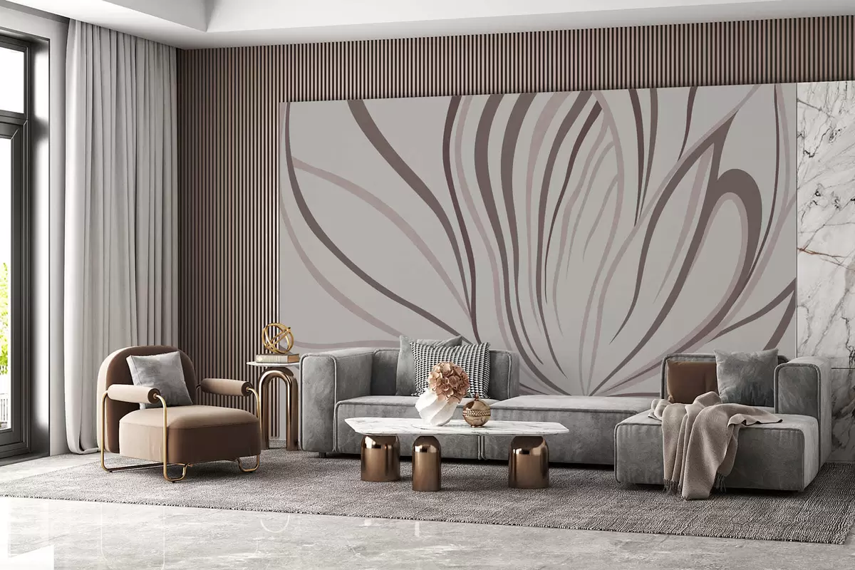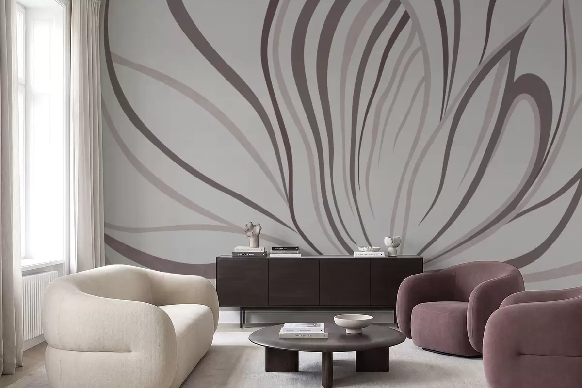 Wall murals Stylized flower with soft lines in pink beige tones Nr. w05392v1