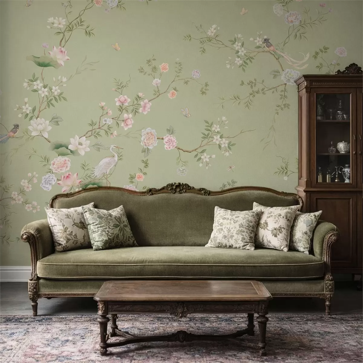 Wall murals Flowering branches with birds on light green Nr. w05416