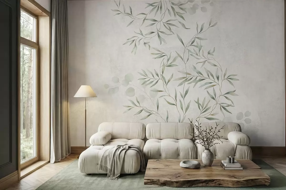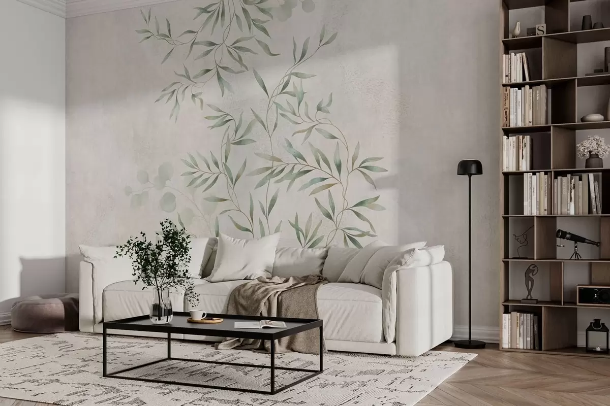 Wall murals Delicate botanical pattern with thin branches on light background Nr. w05424