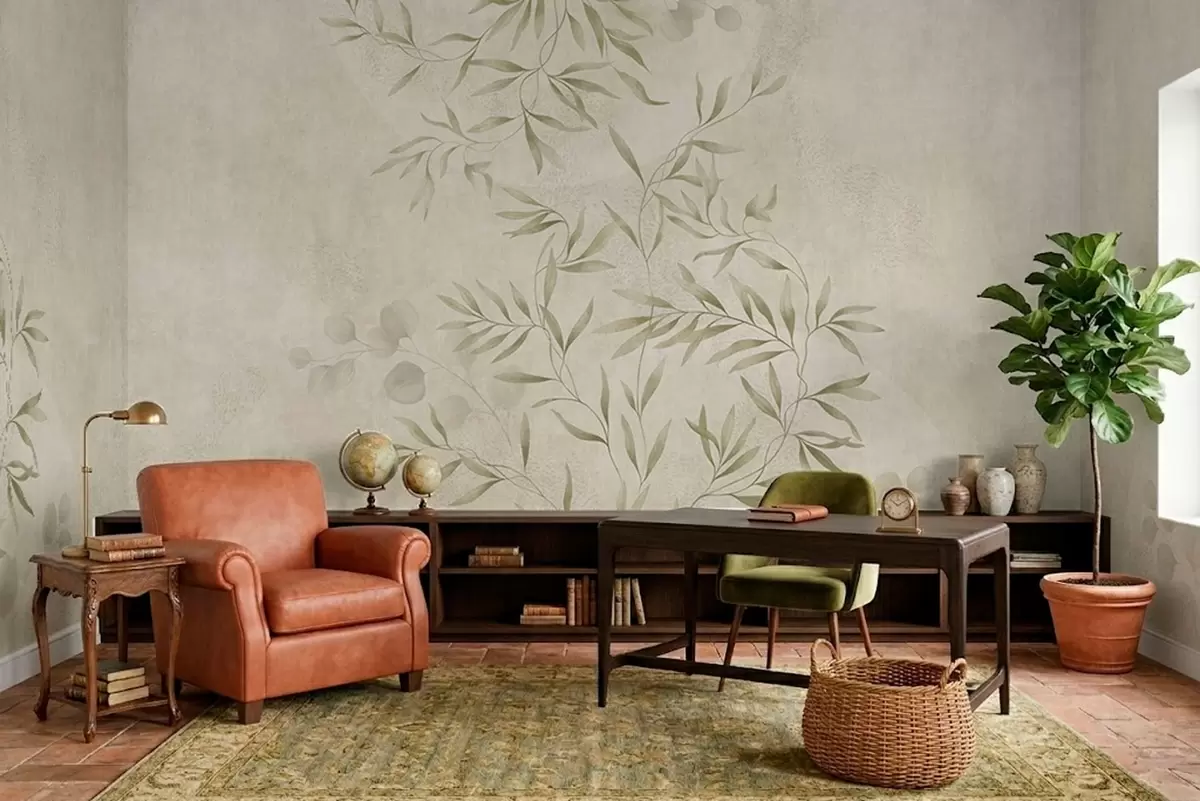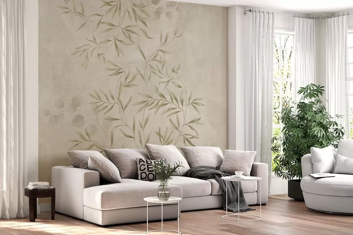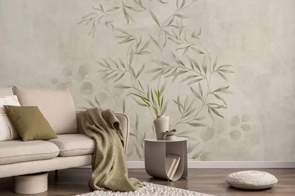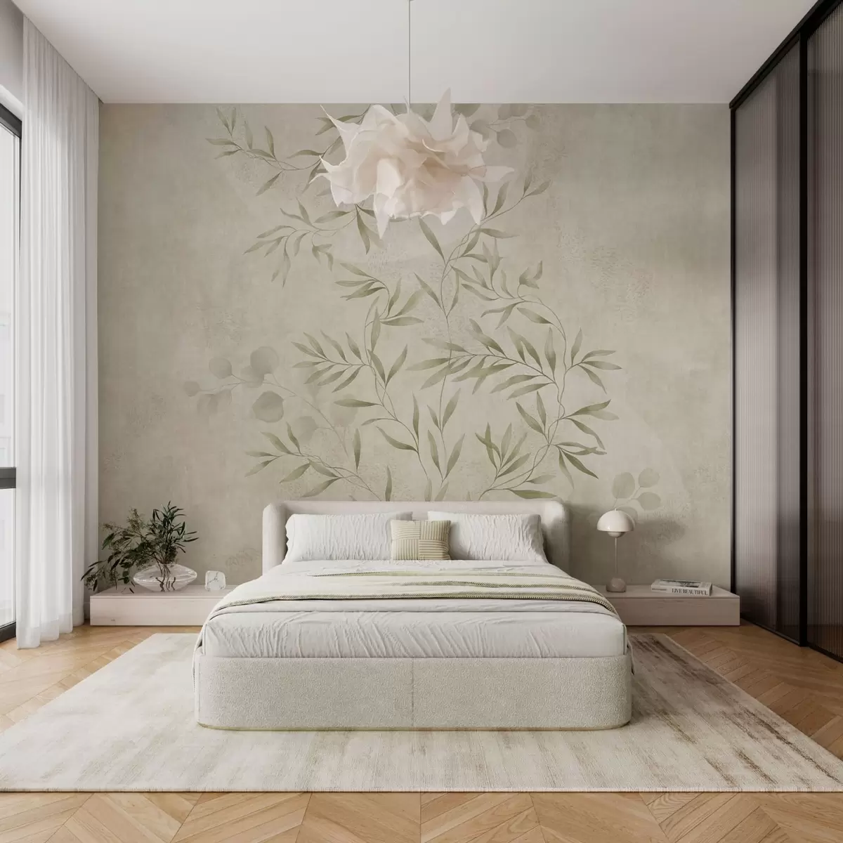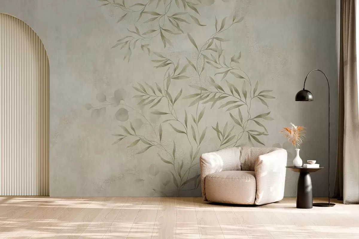 Wall murals Botanical pattern in light green tones on textured background Nr. w05424v1