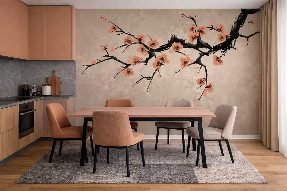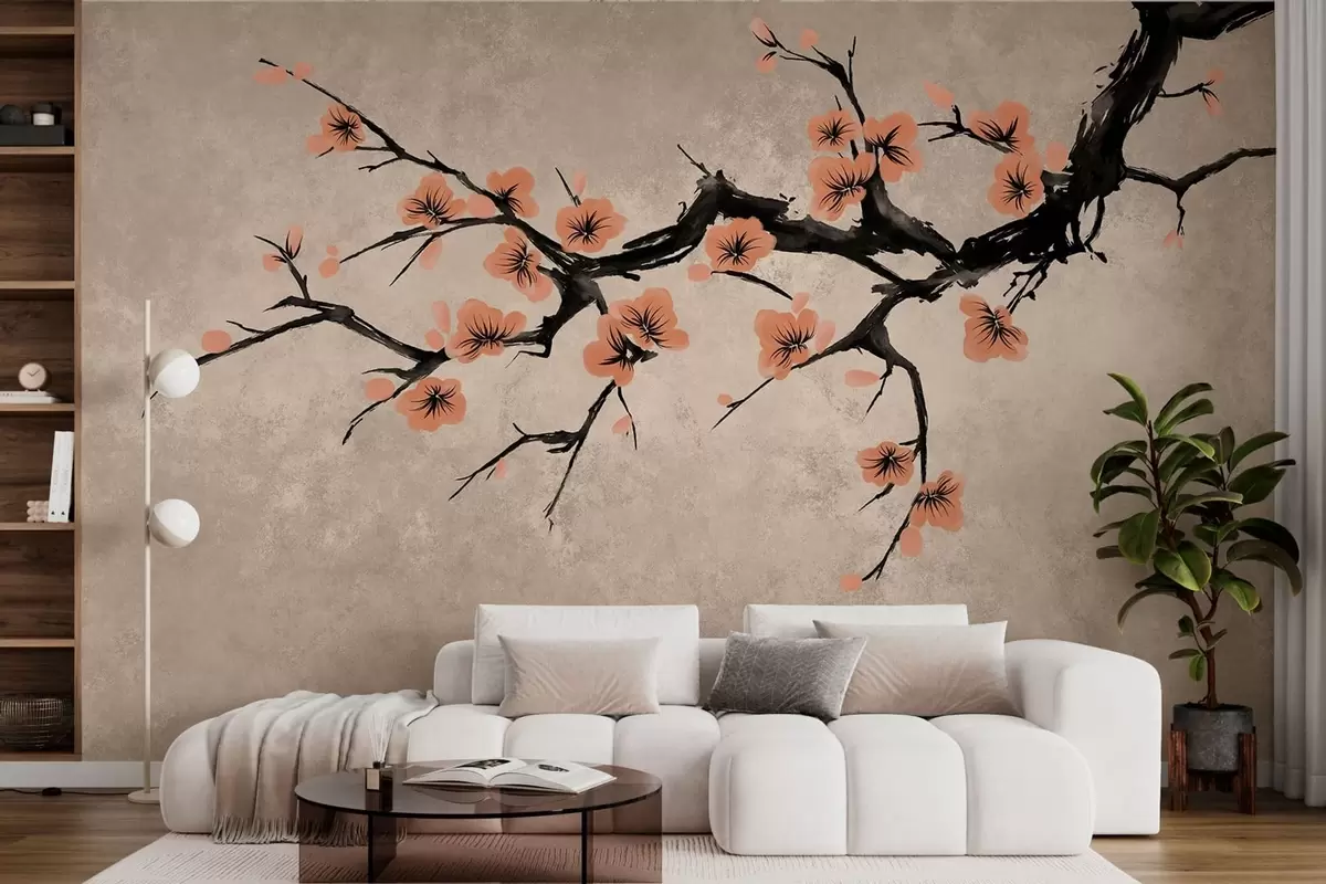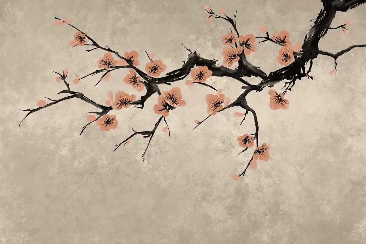 Wall murals Branch with peach blossoms on textured background Nr. w05425v3