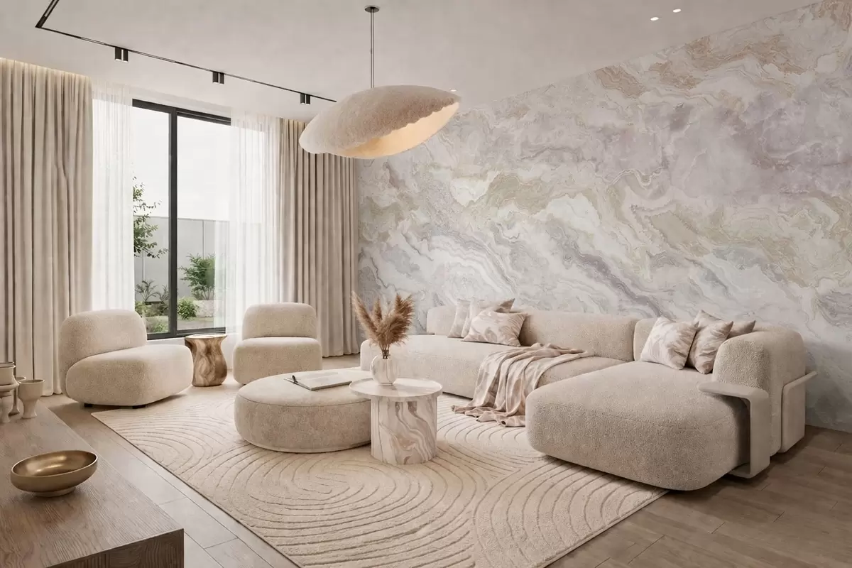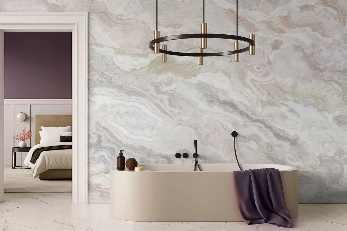 Wall murals Light onyx with beige and gray flowing layers Nr. w05430