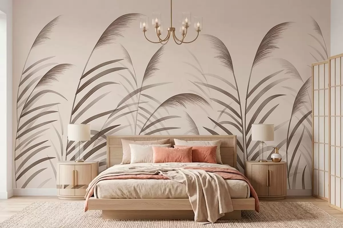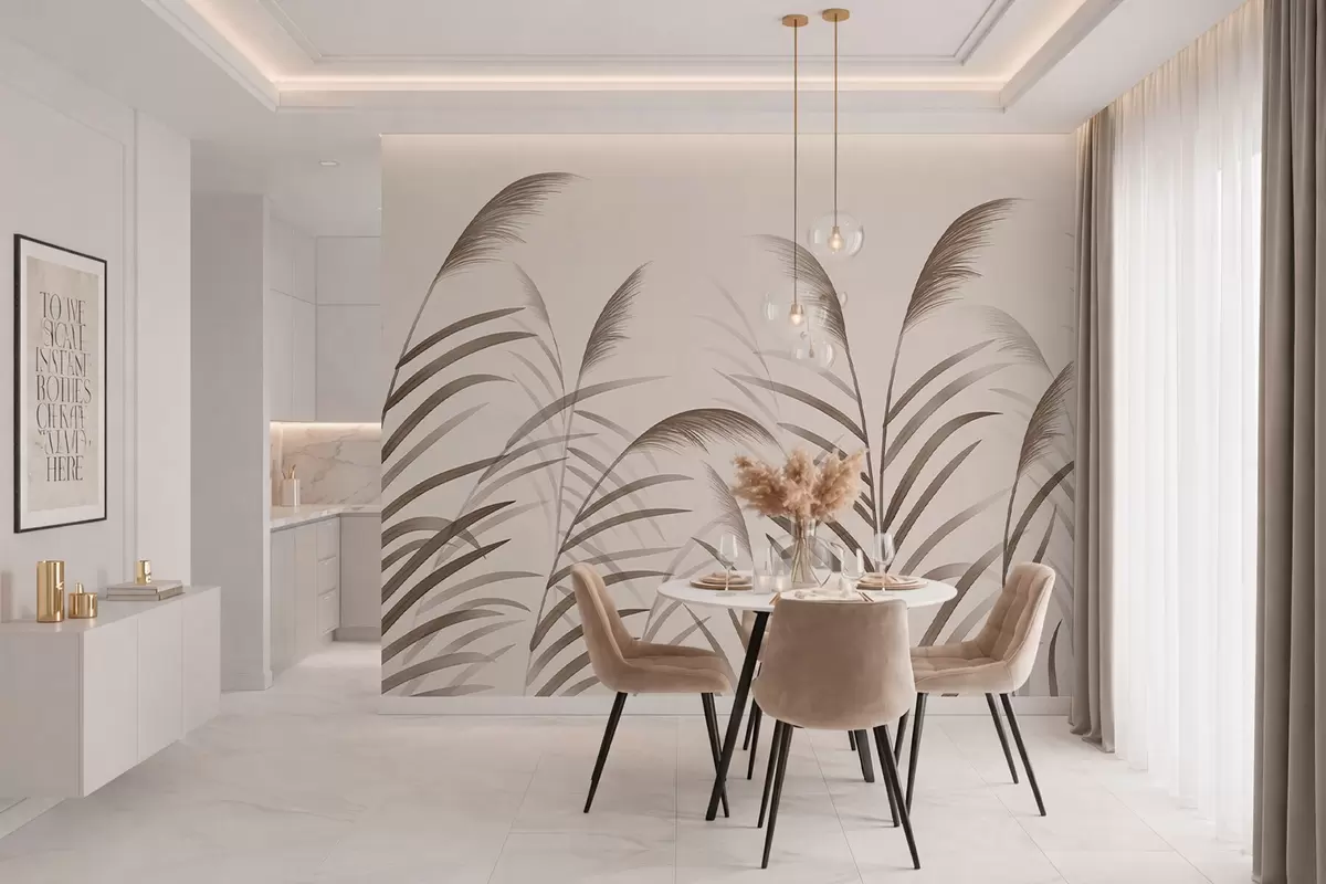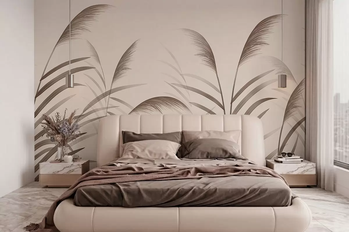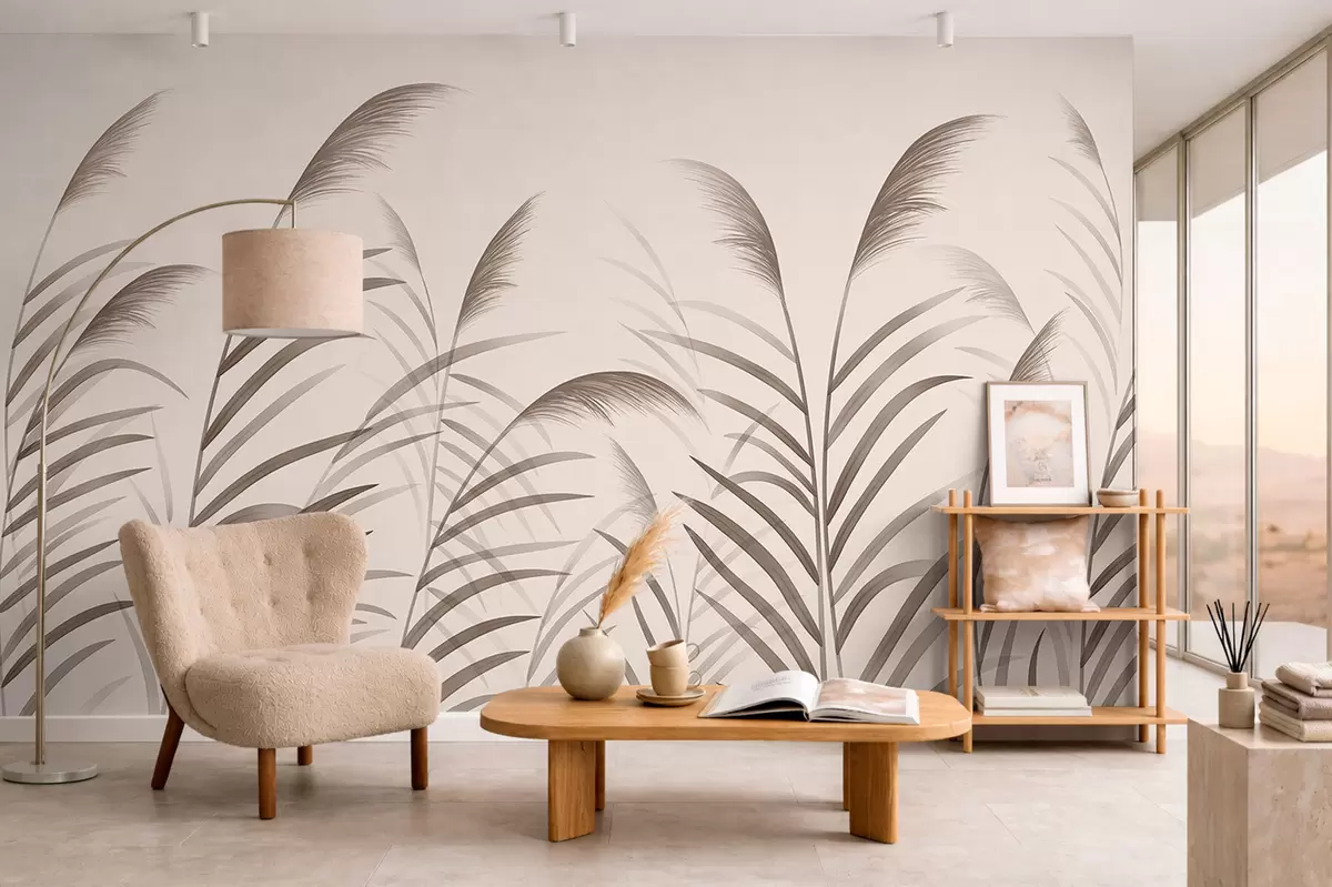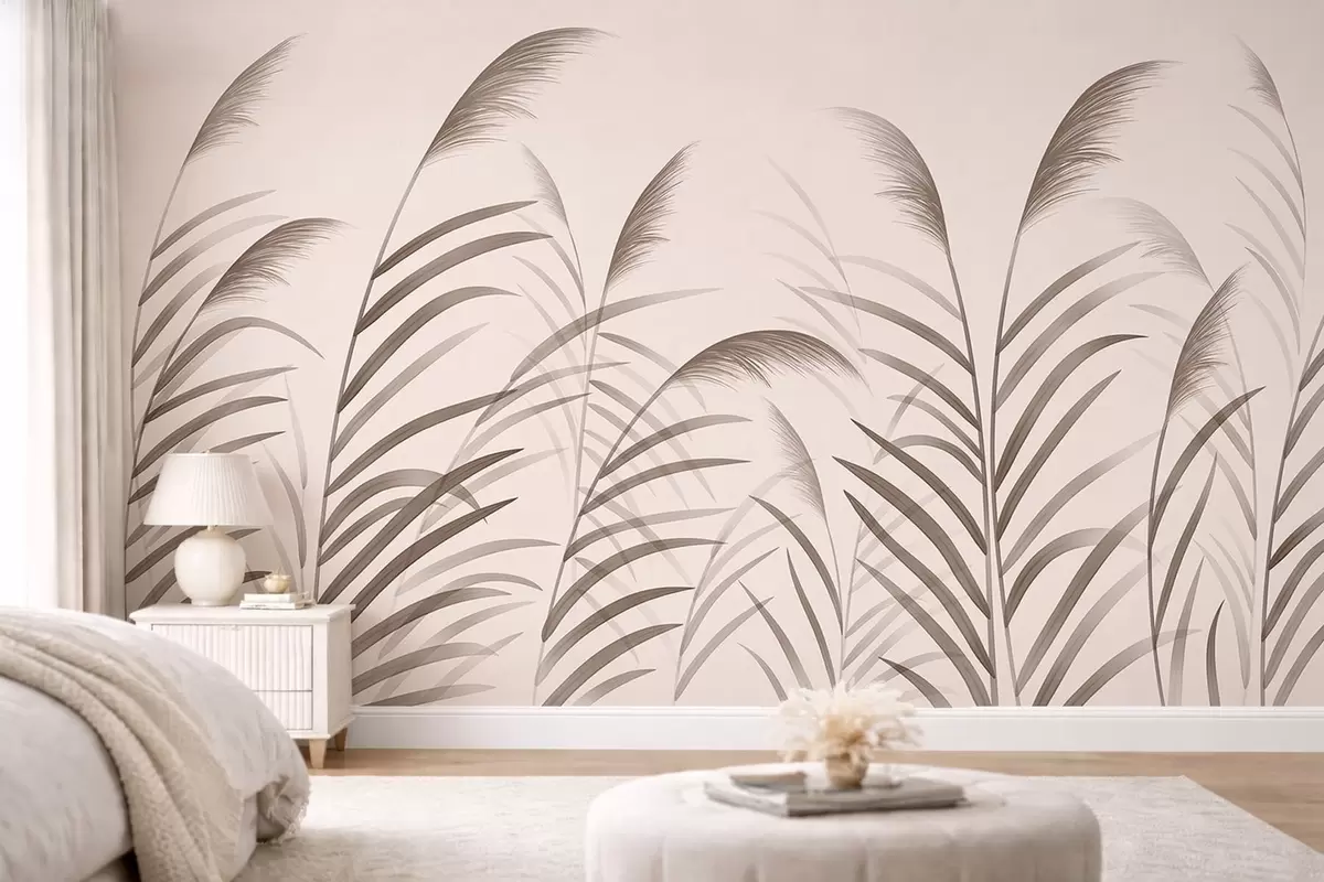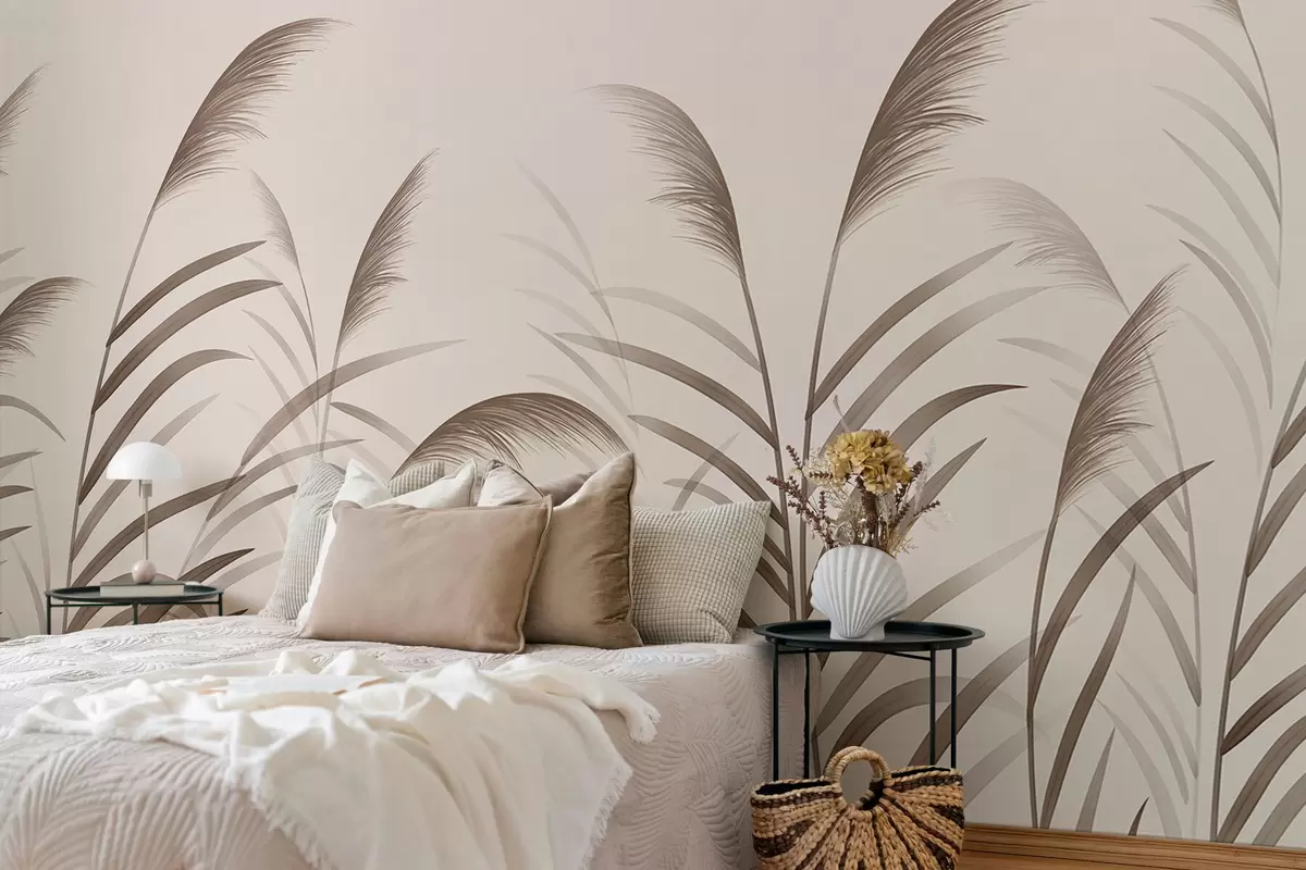 Wall murals Minimalism reed silhouettes in beige tones Nr. w05432