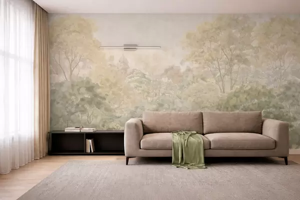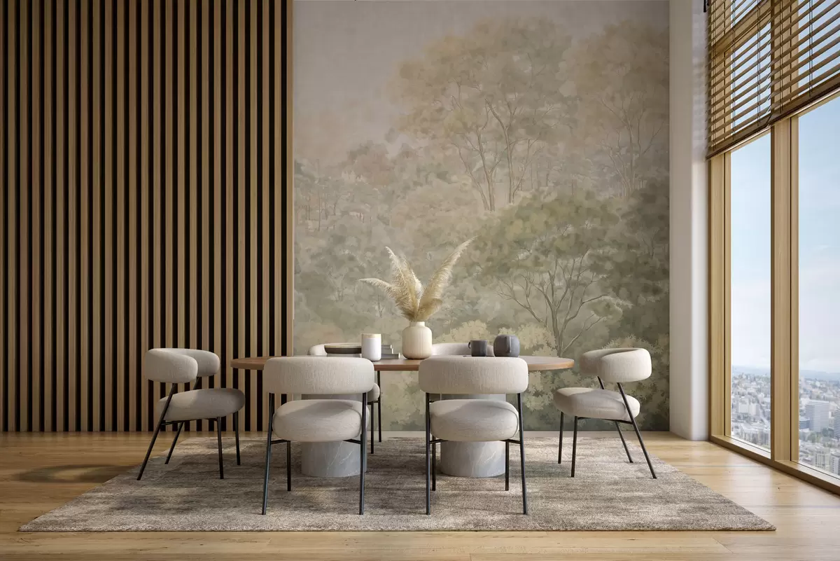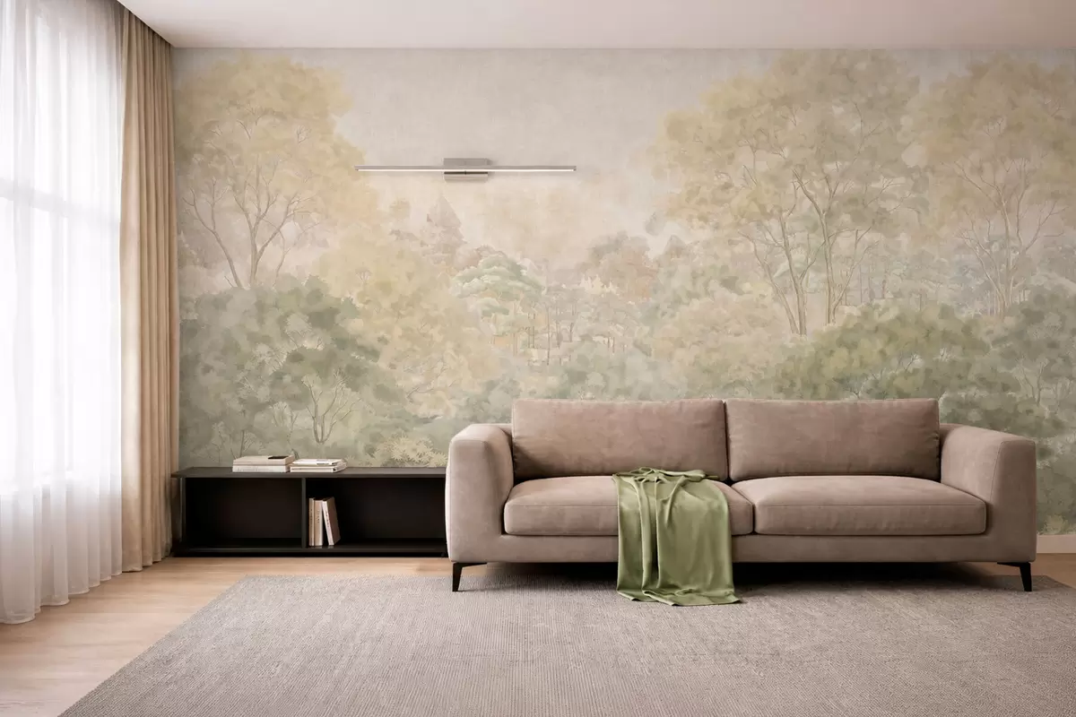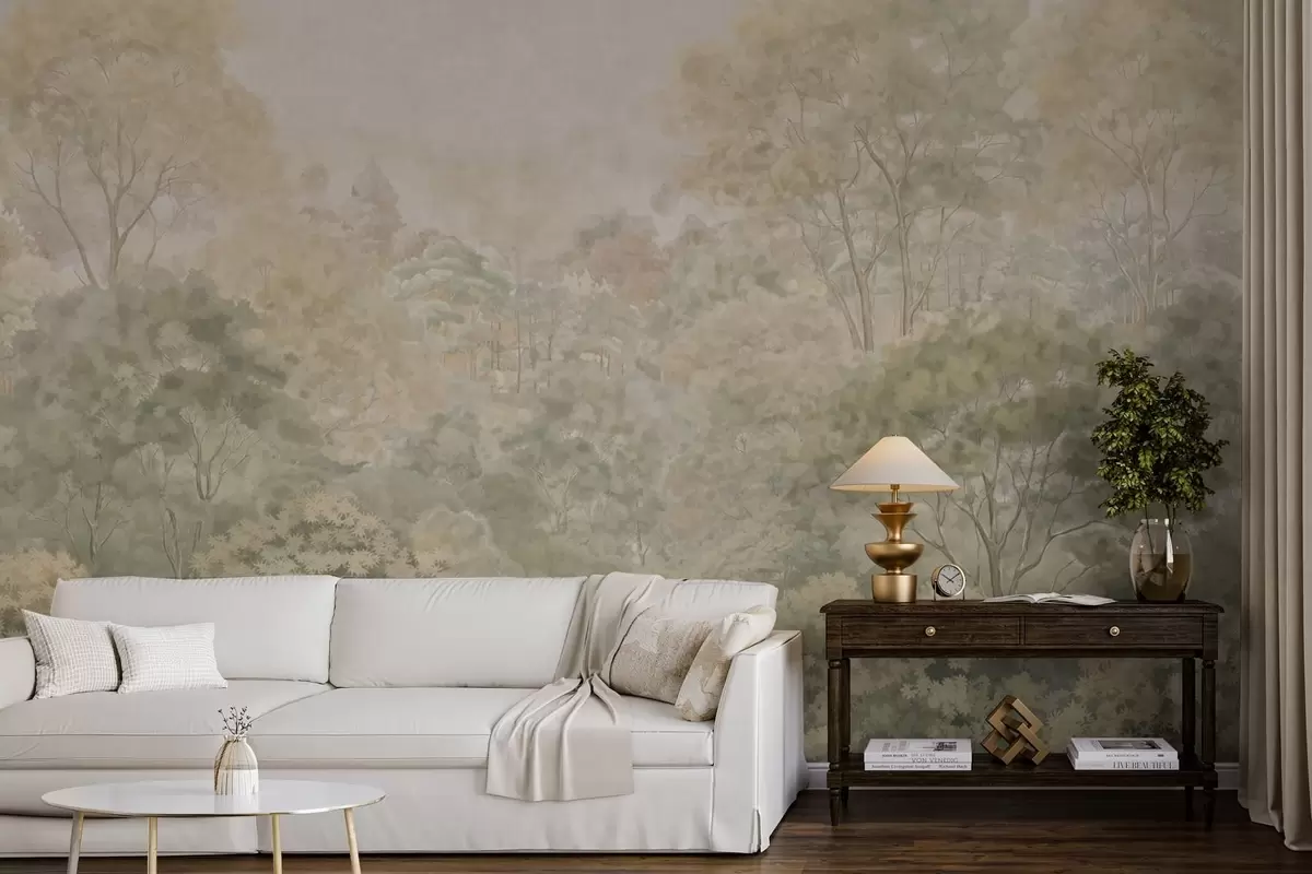 Wall murals Vintage forest landscape in muted green tones Nr. w05433