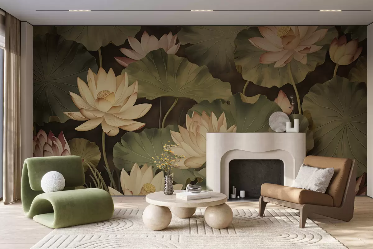 Wall murals Vintage lotus blooms Nr. w05445