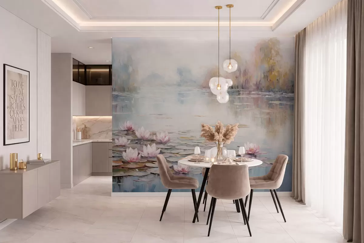 Wall murals Impressionism lake with water lilies and soft light Nr. w05515