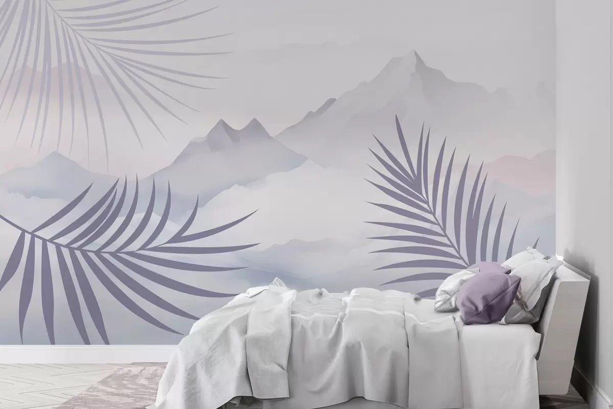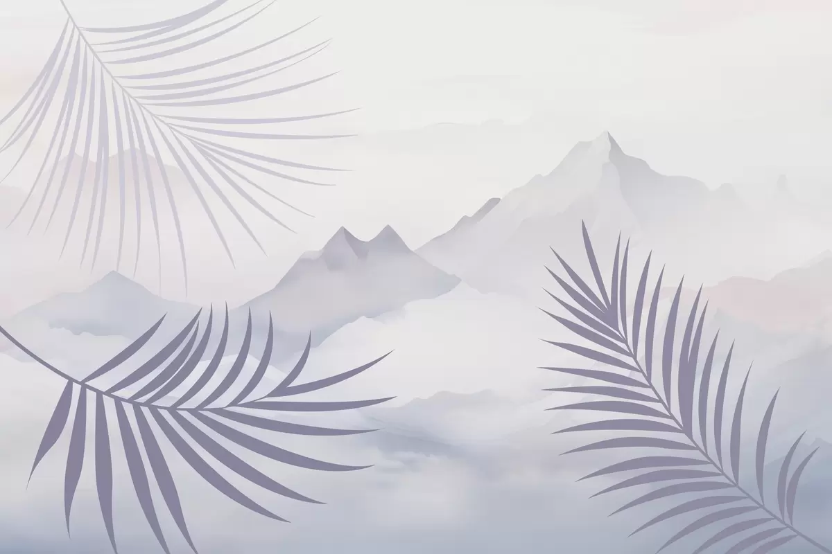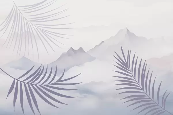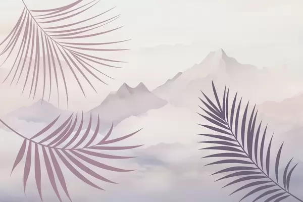 Wall murals Palm leaves against the backdrop of mountains Nr. w05548