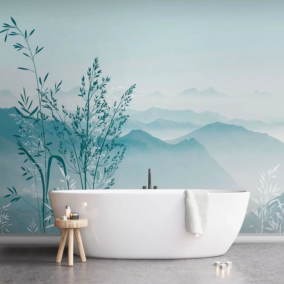 Wall murals Mountain view with plants and flowers Nr. w07910