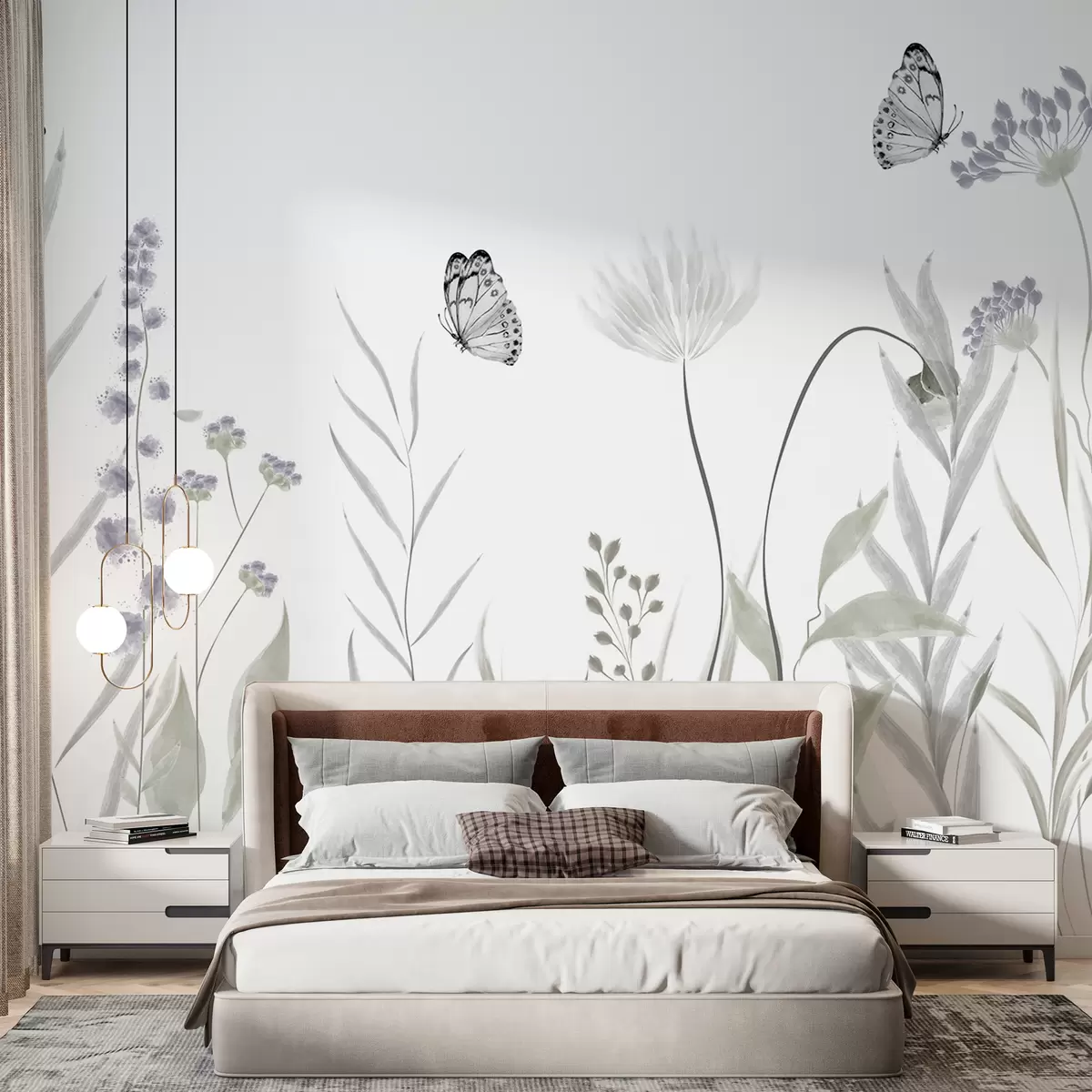 The addition of the Wall Murals featuring wildflowers and butterflies transforms the living room into a serene escape. The soft pastel hues create a calming atmosphere, enhancing natural light and promoting a sense of tranquility. The delicate butterflies add an enchanting touch, inspiring a feeling of whimsy and connection to nature. This watercolor design not only brightens the space but also invites creativity and relaxation, making the living room a welcoming haven for both relaxation and social gatherings.