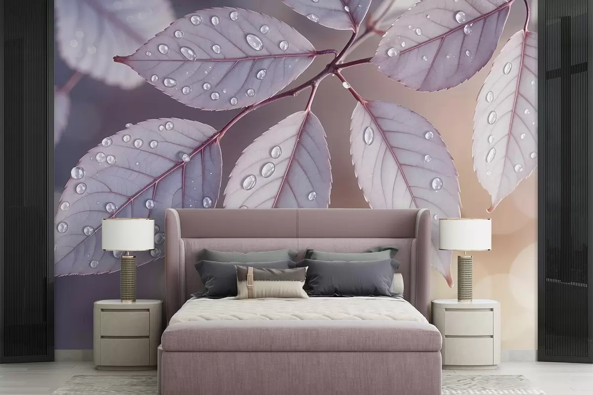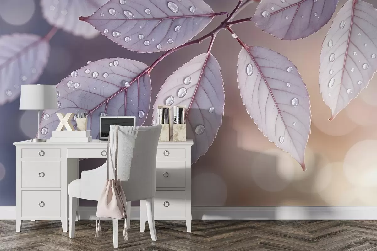 Wall murals Delicate purple leaves with water droplets, soft focus background Nr. w08419
