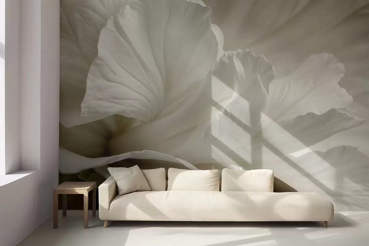 Wall murals Abstract minimalistic print of delicate white flower with soft, velvety petals Nr. w08424