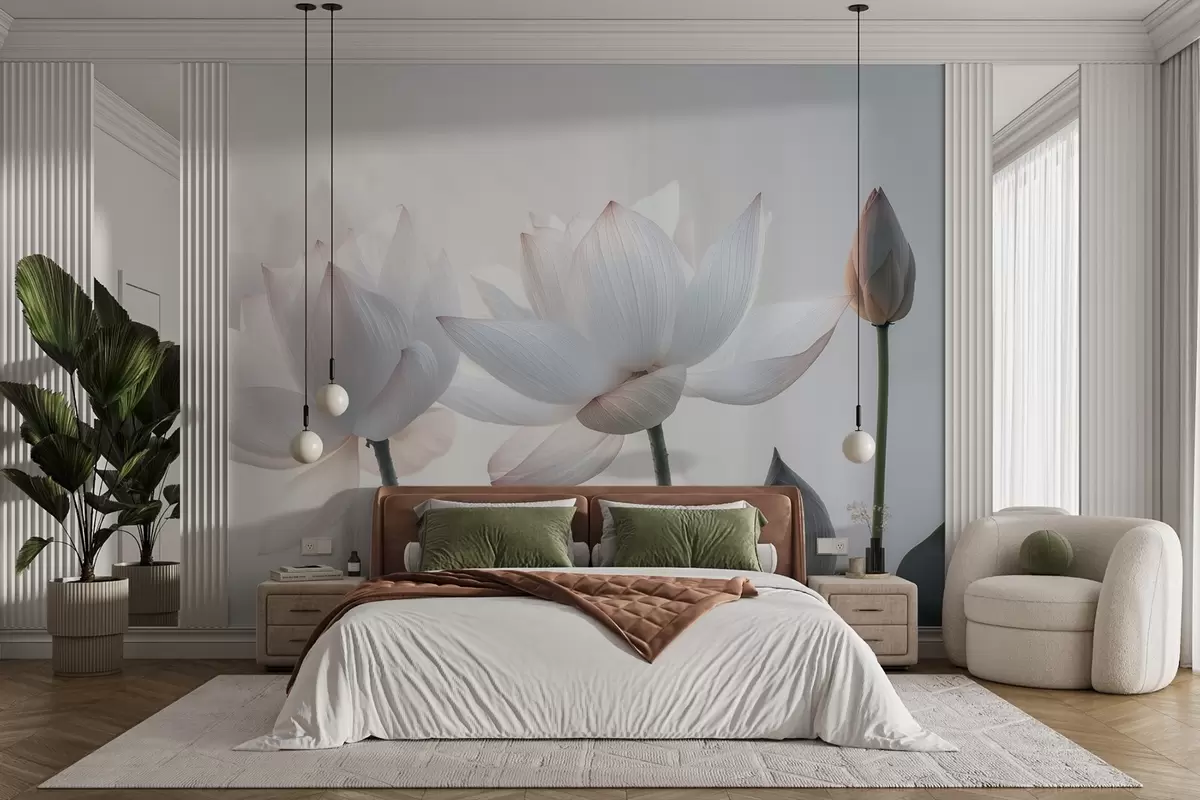 Wall murals Gentle lotus flowers with petals and leaves Nr. w08488