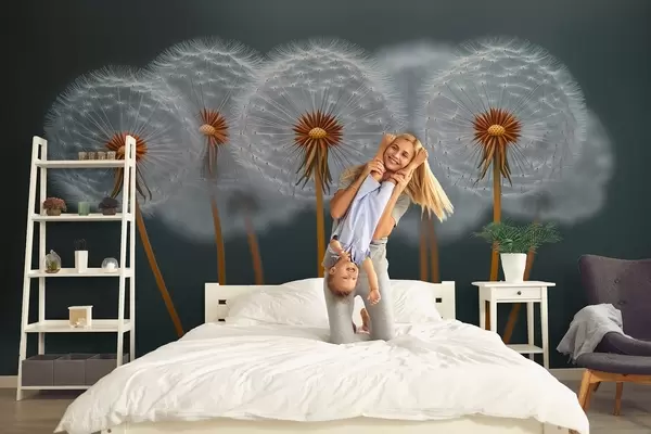 Wall murals Airy dandelions against a dark natural background Nr. w08498