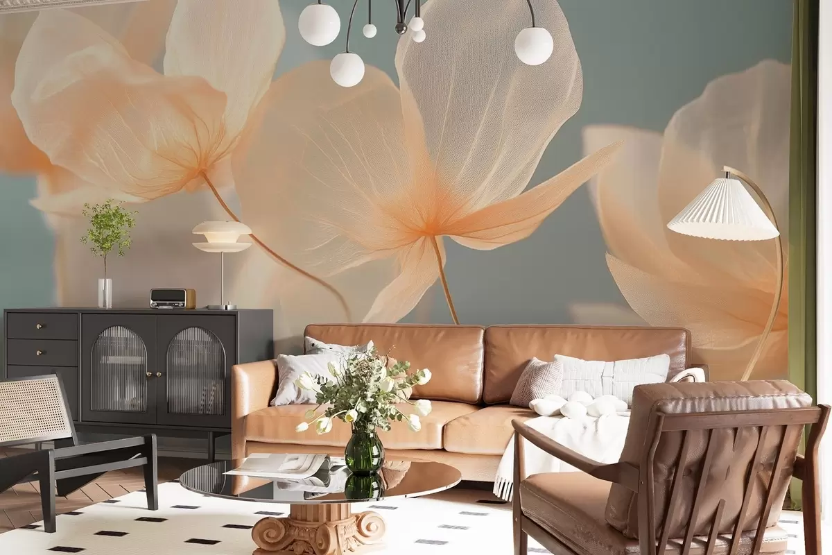 Wall murals Lotus petals, a delicate composition with a blue background Nr. w08500