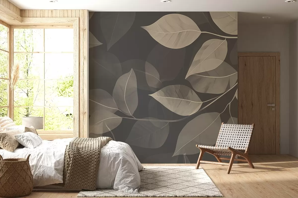 Wall murals Branches of leaves in blue and gray tones Nr. w08502v1