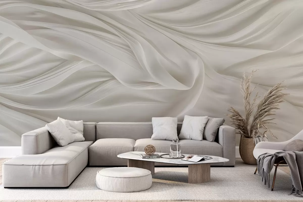 Wall murals Modern print with imitation of smooth, flowing white fabric with soft, billowing folds and creases Nr. w08537