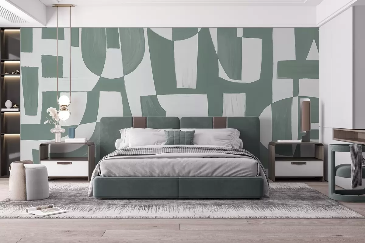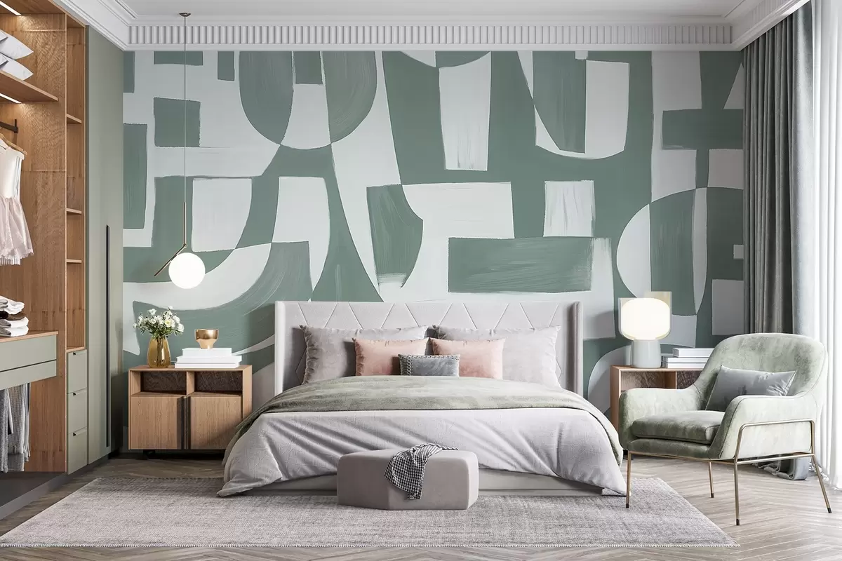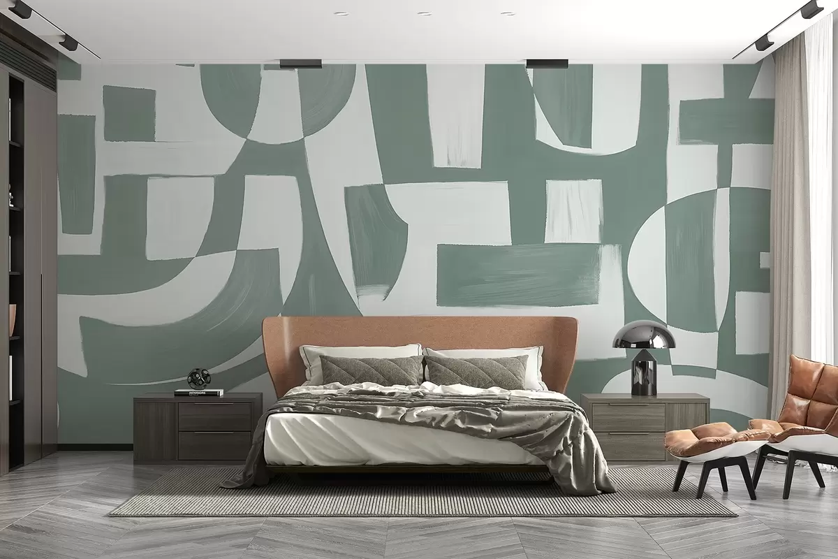 Wall murals Abstract green and white geometric shapes and patterns, creating a visually striking and dynamic composition Nr. w08608v1