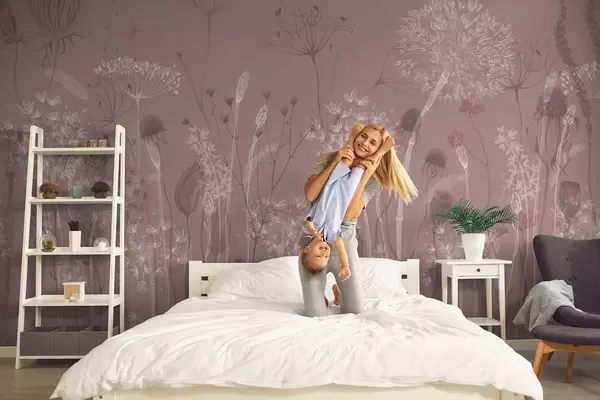 Wall murals Airy dandelions and wildflowers in watercolor style in pink tones Nr. w08637v1