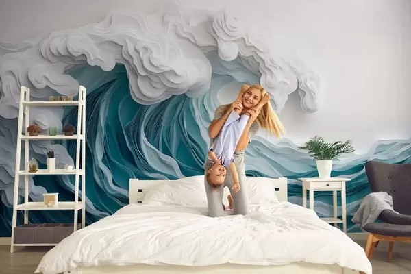 Wall murals Foaming ocean wave in a paper-cut style Nr. w08694