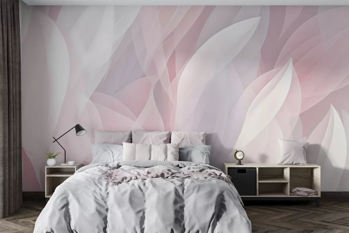 Wall murals Abstract design featuring soft petal-like shapes in shades of pink and white, creating a layered effect Nr. w08774