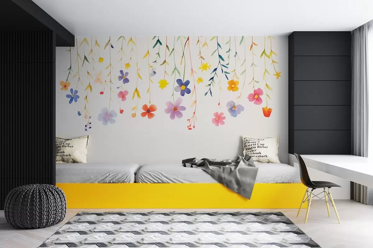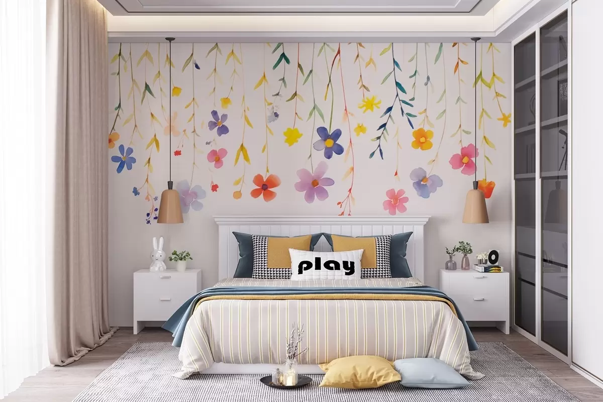 Wall murals Wildflowers in a watercolor style, simple and colorful Nr. w08851