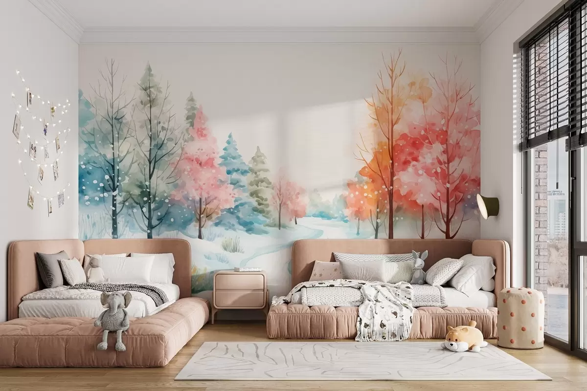 Wall murals A vibrant winter forest in a watercolor style Nr. w08856