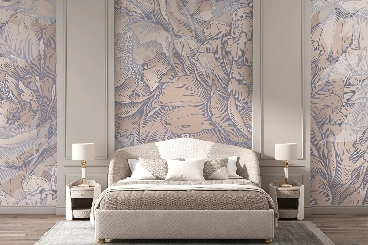Wall murals Peony flowers with detailed petals and stamens, soft pastel colors, vintage botanical illustration style Nr. w08890