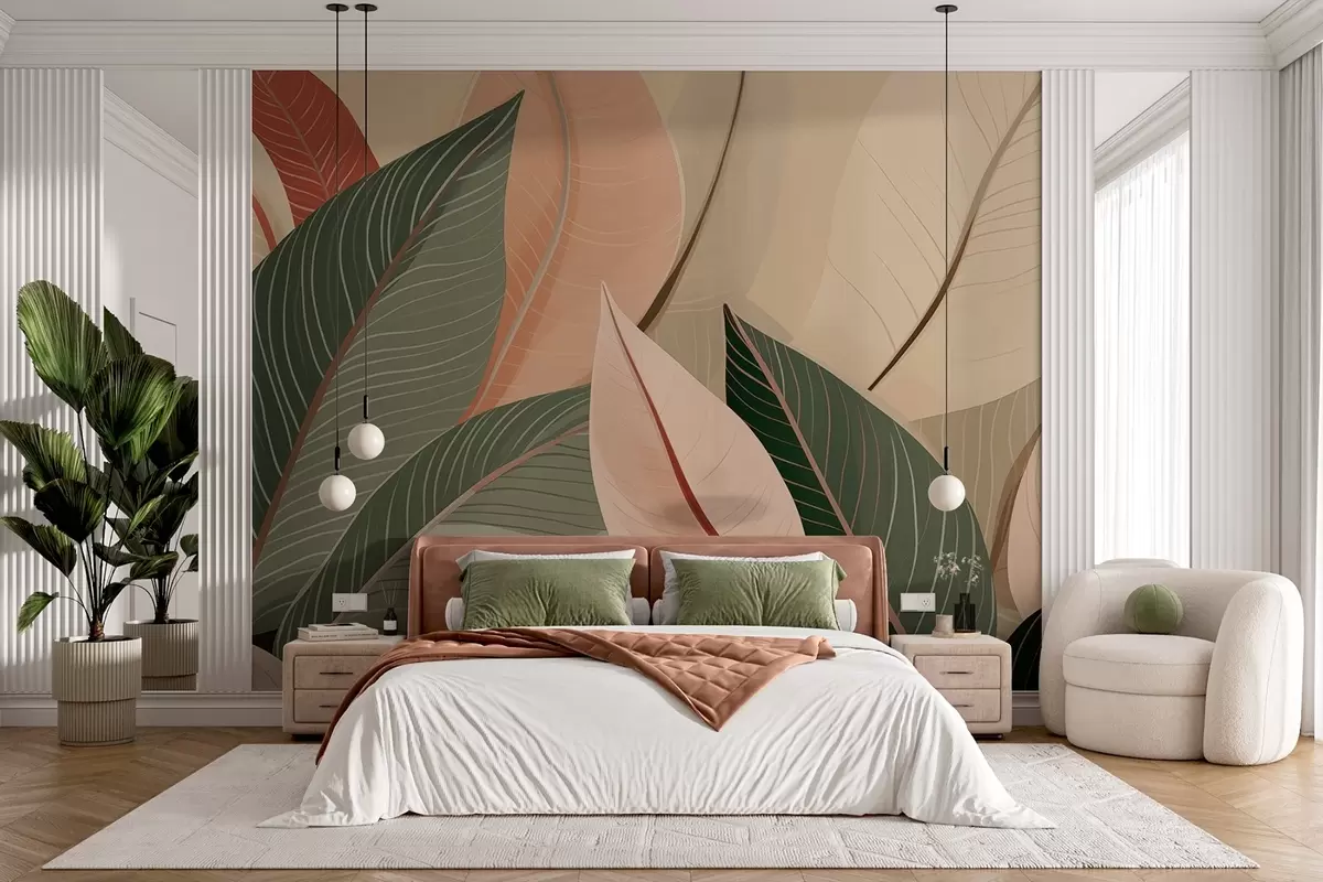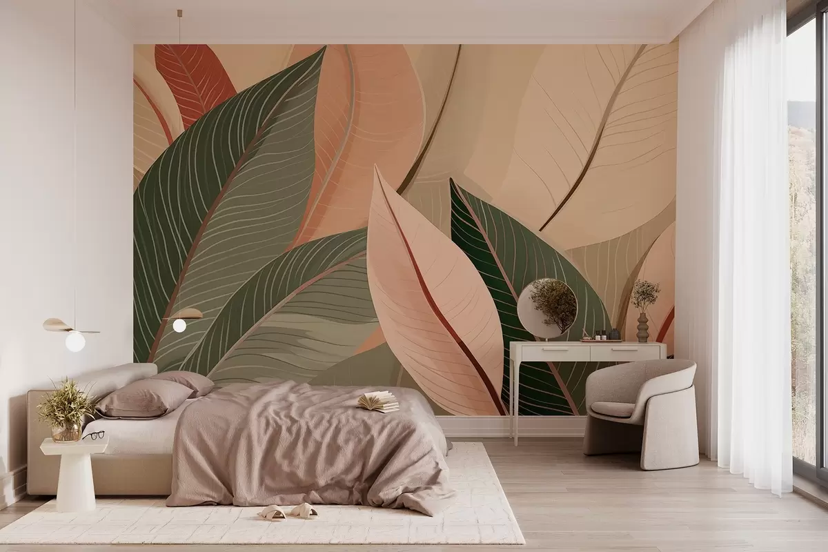 Wall murals Close-up of leaves in olive green and pink-cream colors Nr. w08944