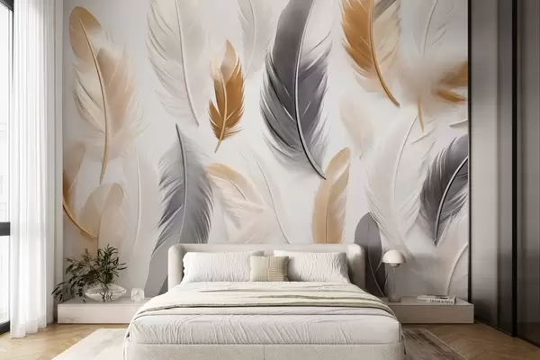 Wall murals Beige-gray feathers in soft, calm tones Nr. w08955