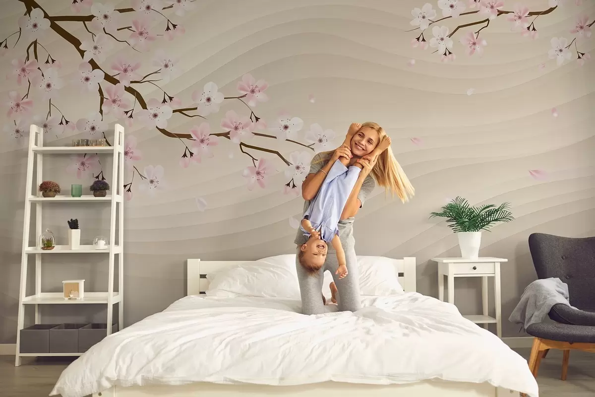 Wall murals Sakura branches on a wavy sandy background Nr. w08959