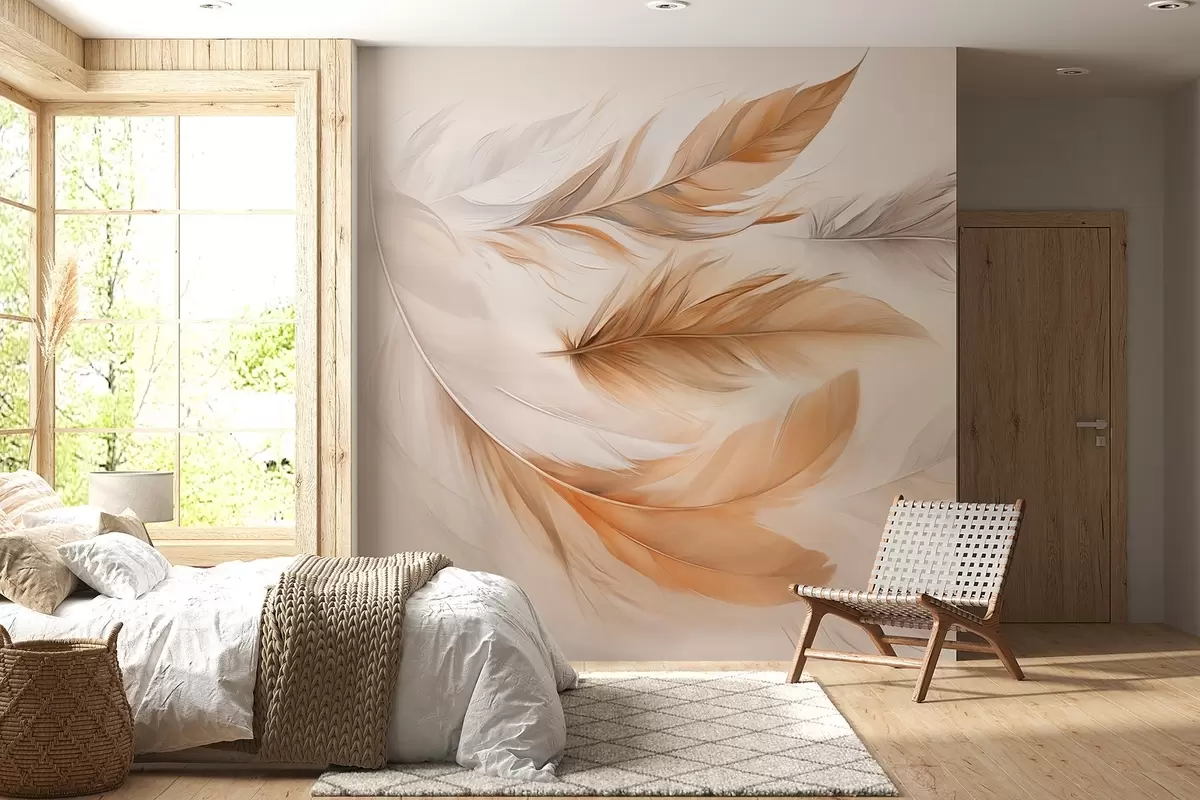 Wall murals Floating airy brown-gray feathers Nr. w08968