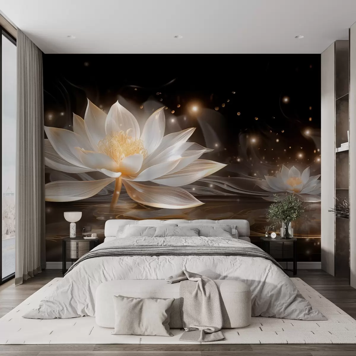 Wall murals Elegant white water lilies on dark water Nr. w09021