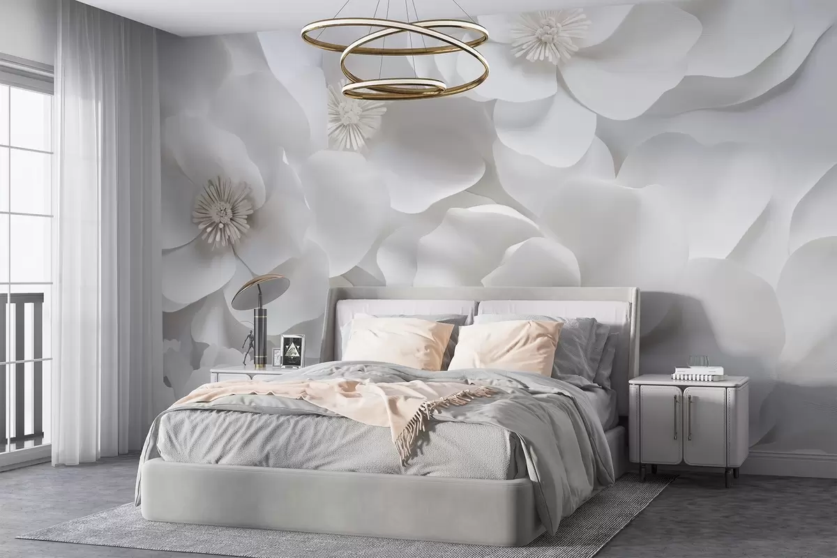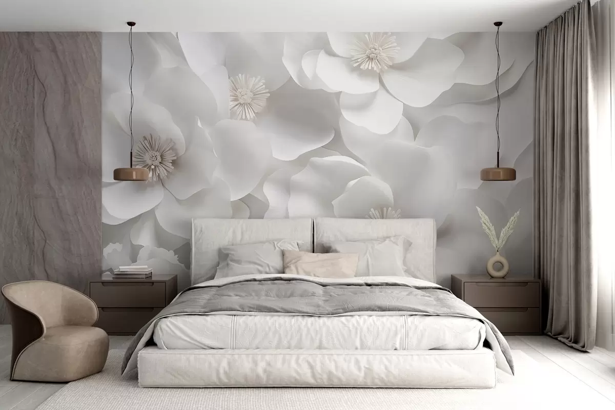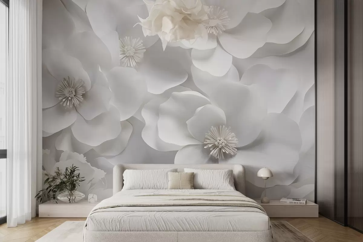 Wall murals White flowers with delicate petals, arranged in a dense cluster, creating a sense of purity and elegance on white background Nr. w09053