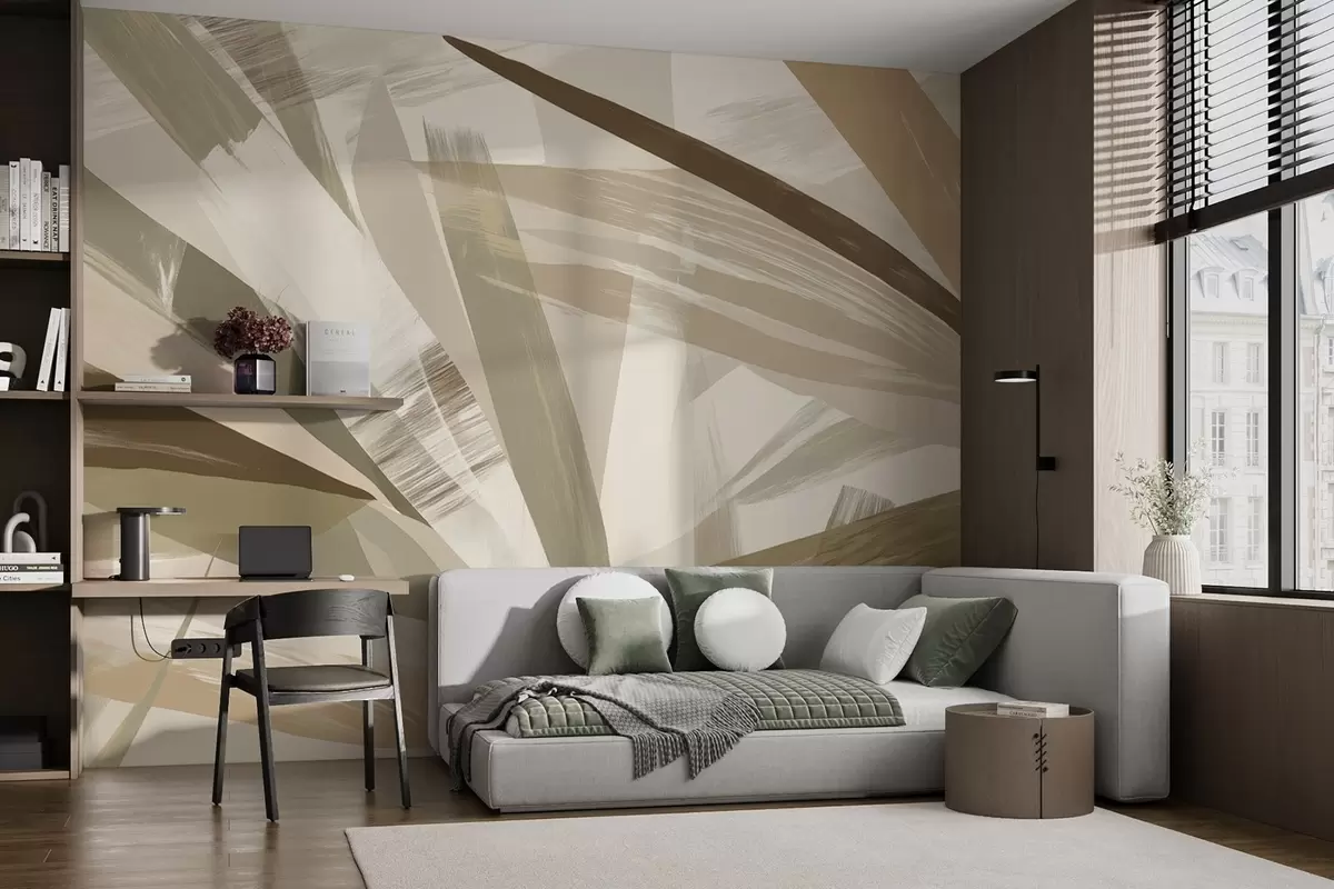 Wall murals Abstract leaves in green and beige tones Nr. w09091