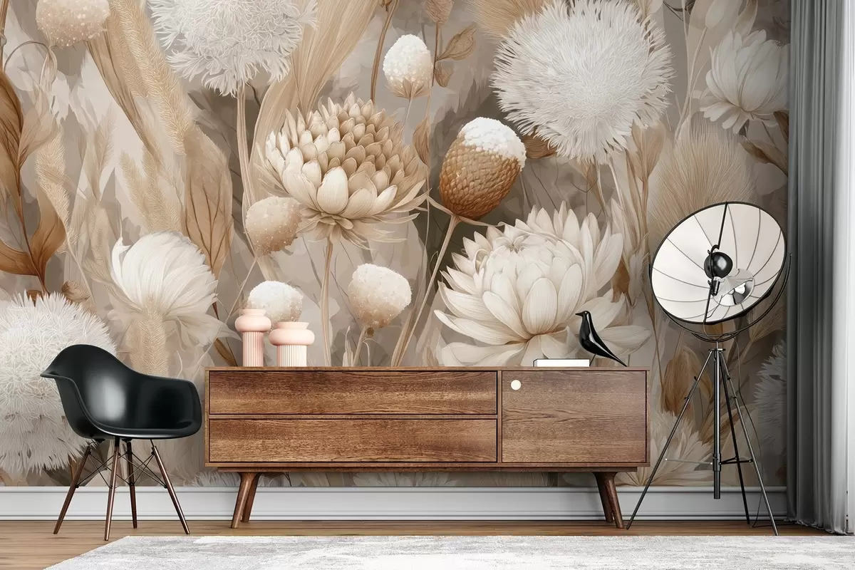 Wall murals Boho Harmony: Textured flowers in beige and cream tones Nr. w09121