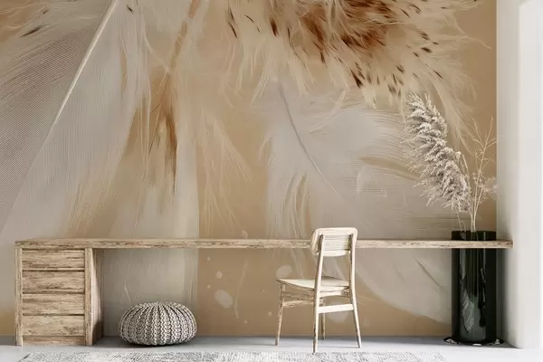 Wall murals Light feathers in warm beige and white tones Nr. w09153