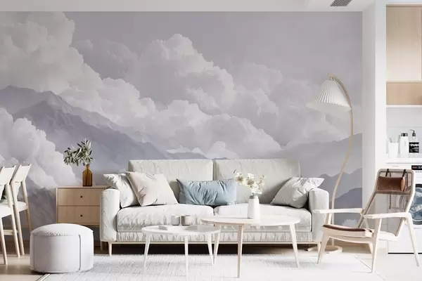 Wall murals Soft clouds over mountains in blue tones Nr. w09226v2